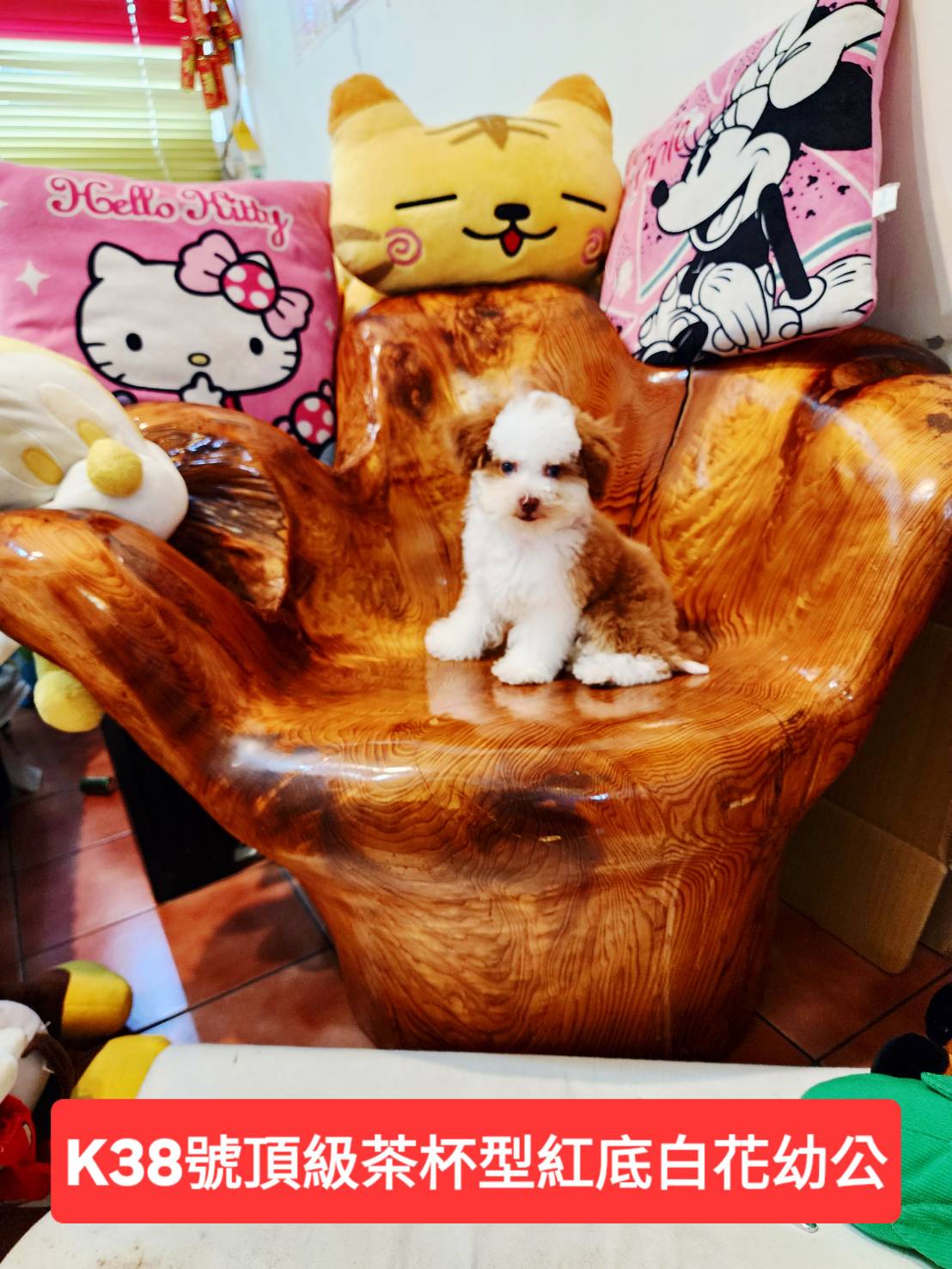 花貴賓頂級紅底白花+黑白花色幼犬+咖啡色花貴賓玩具茶杯型幼犬